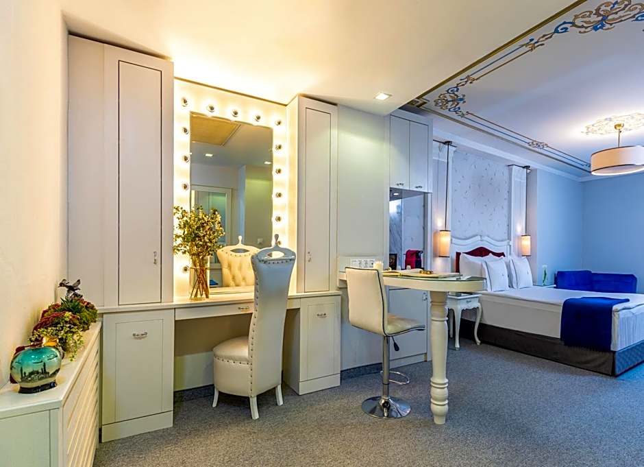 Featuring a furnished balcony with Marmara Sea view, this 138 ft² suite features an elegant living area with a sofa, designer coffee table, Curved LED TV and a DVD Player. Bar shelf decorated with large-sized bottles, kettle set and a complimentary bottle of water are also offered in this suite. Private bathroom comes with a spa bath and a hairdryer.